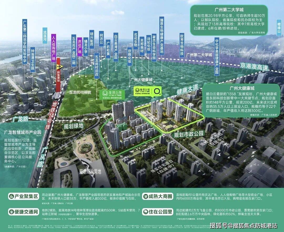 项目3公里范畴内笼盖3所省一级学校:广铁一中白云尝试学校(2025年9月开学)、钟落潭核心小学(市沉点)、广州大同中学(省沉点)。